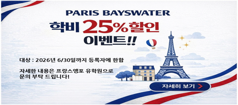Bayswater 어학원 25%할인 이벤트